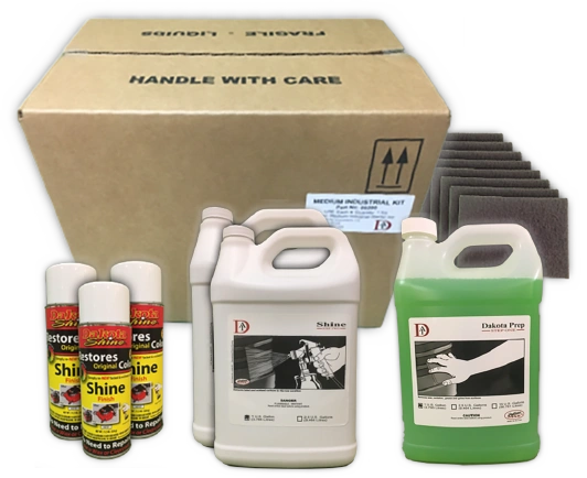 Coverage: Dakota Shine Medium Industrial Kit will fix faded and oxidized paint, surfaces, and decals on the equivalent of: