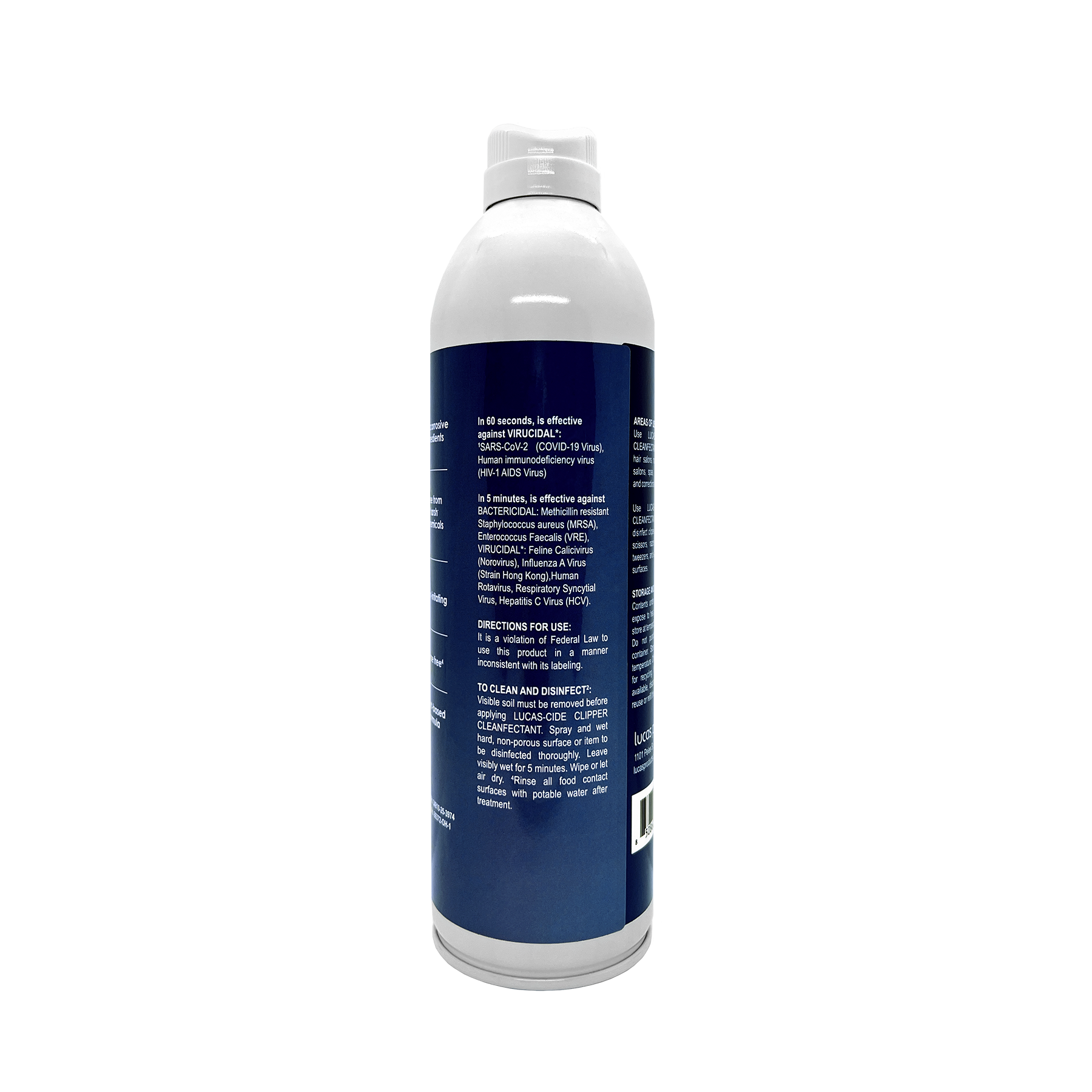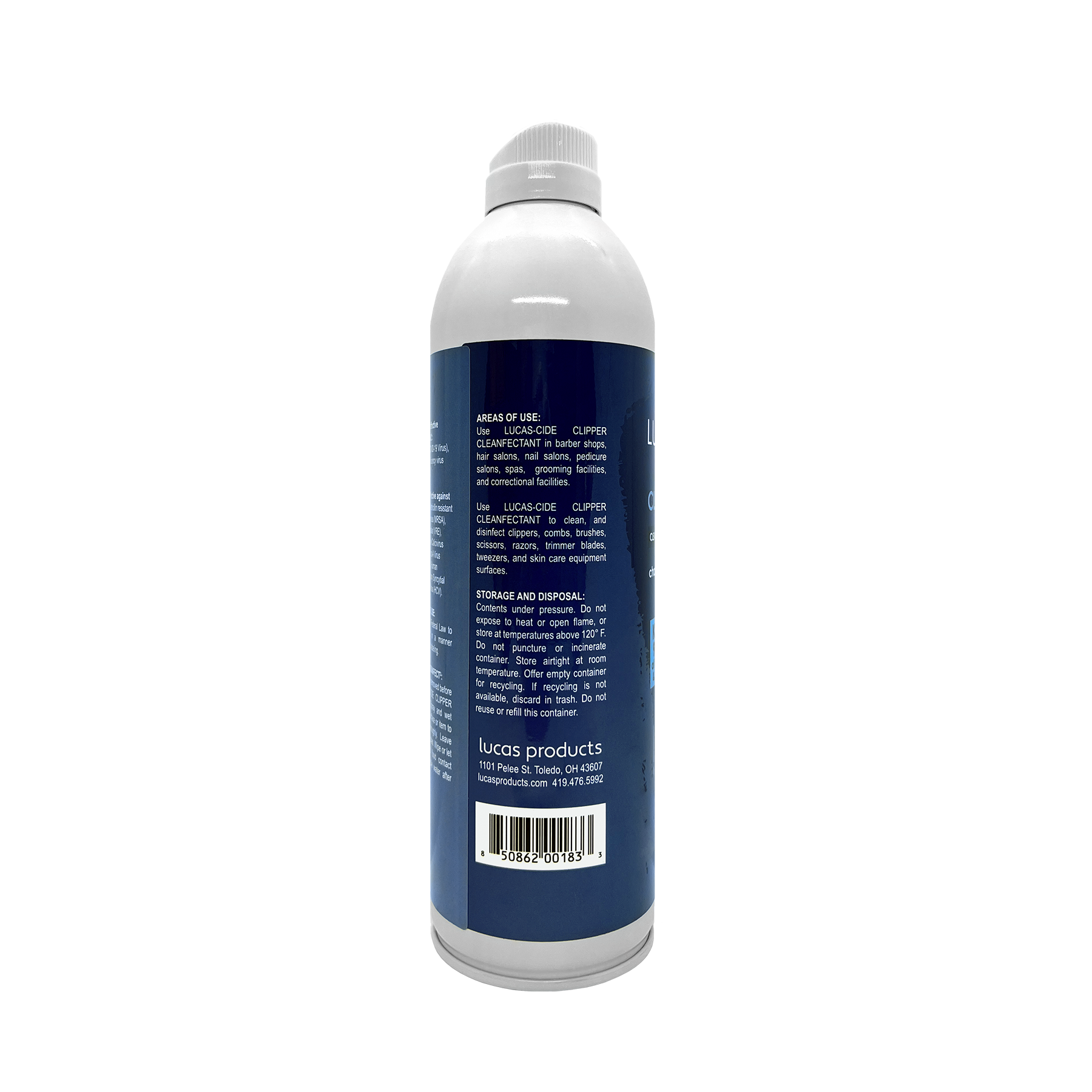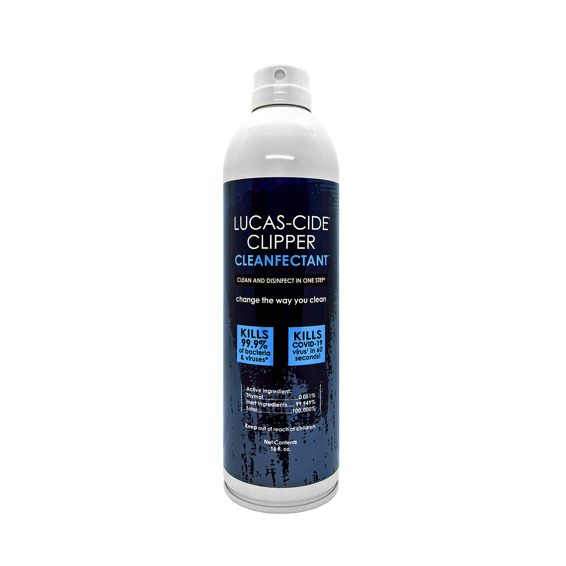 LUCAS-CIDE Clipper Cleanfectant cleans and disinfects all in one step. It’s the perfect addition to your barn, trailer or show travel bag. Designed to cool and lubricate stainless steel and ceramic clippers using a unique plant-based, anti-rust formula in an environmentally friendly non-aerosol can. Lucas-Cide is recommended for clippers, combs, brushes, scissors, razors, trimmer blades, tweezers, and skin care equipment surfaces. The non-toxic, biodegradable formula is safe to use on horses, livestock and dogs.